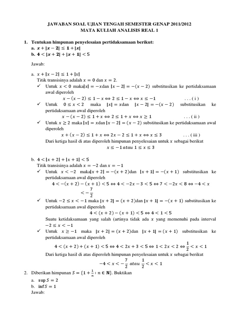 Soal Analisis Real Materi Kekonvergenan Jawabanku Id from image.slidesharecdn.com We did not find results for: Kunci jawaban pengantar analisis real 1. Maybe you would like to learn more about one of these? Check spelling or type a new query.